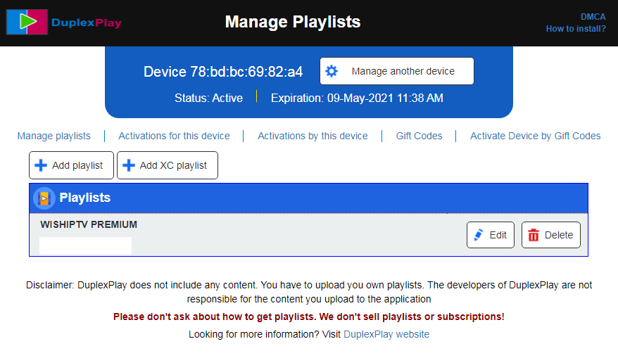 Remarque : L’application Duplex Play n’existe plus dans les stores de tous les appareils et il n’est plus possible de l’activée si vous l’avez utilisez auparavant. Donc une fois votre licence expire vous devez basculer vers une autre application. Nous recommandons SET IPTV ou FLIX IPTV.