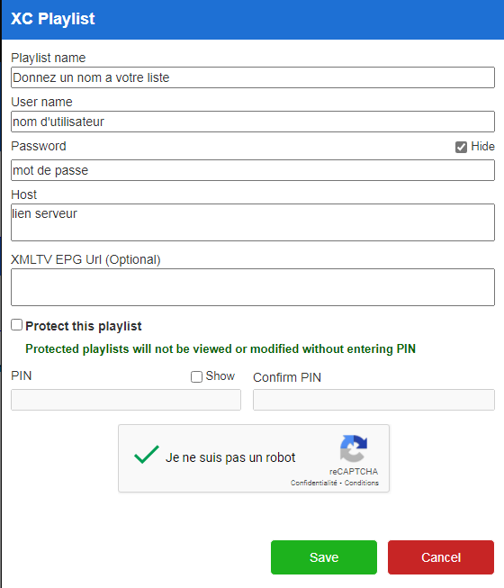 - Add Playlist : Vous devez entrer le lien m3u de votre abonnement.