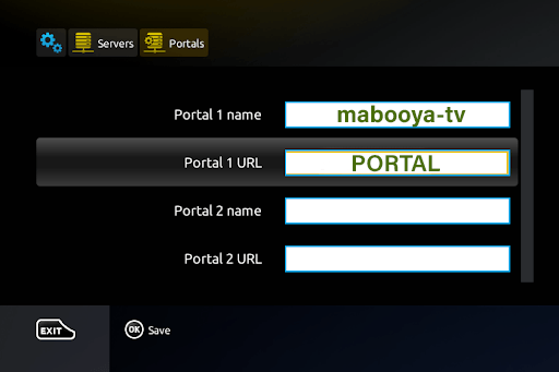 - Étape 4 : Dans la ligne « Portal 1 name », entrez « mo-iptv ». Dans la ligne « Portal 1 URL », entrez l’adresse du Portal fournie par email.